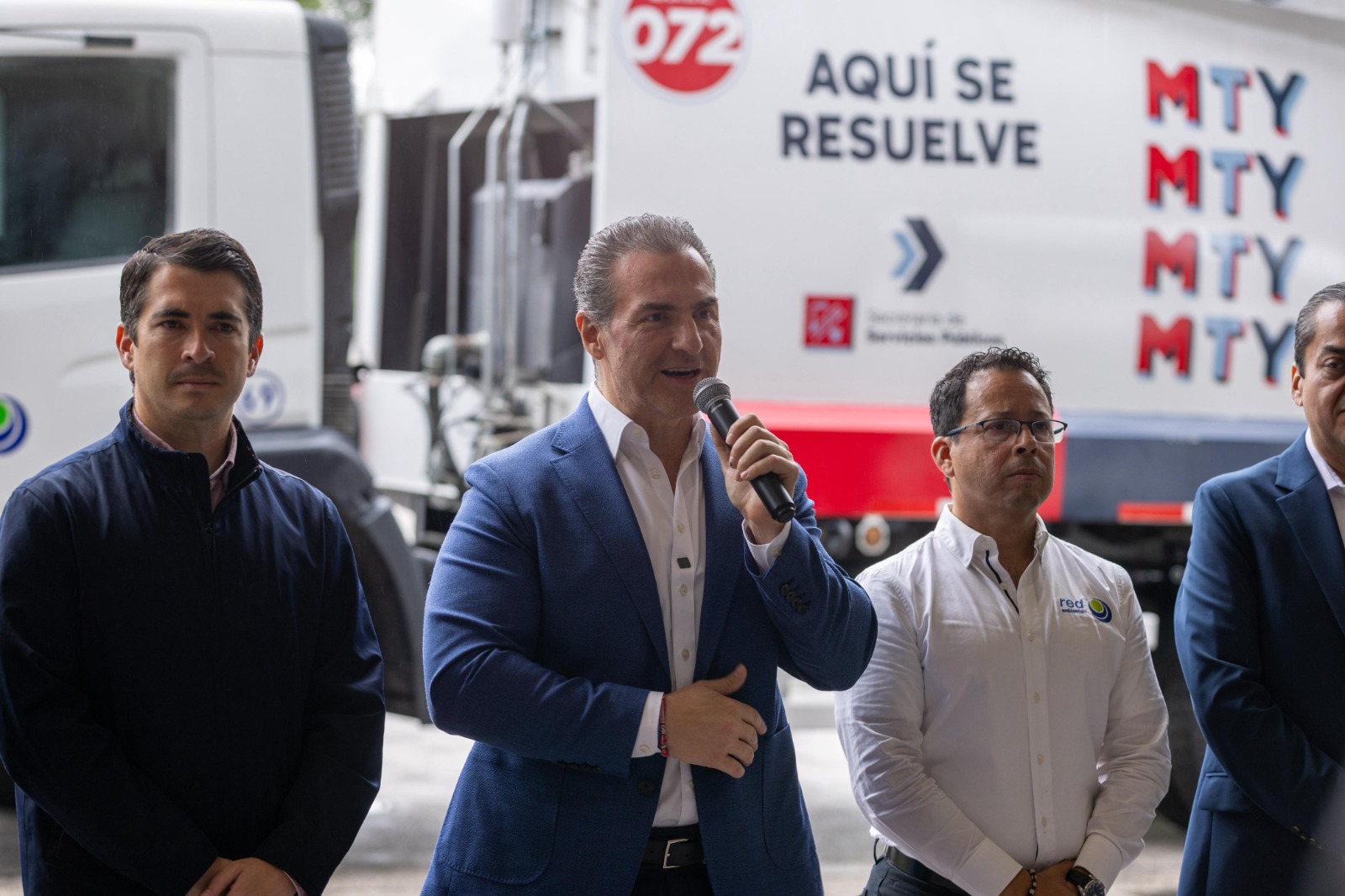 El alcalde de Monterrey, Adrián de la Garza, realizó la incorporación simbólica de cuatro camiones recolectores a la flotilla de Red Recollector, empresa encargada del retiro de basura domiciliaria en la ciudad.